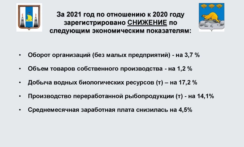 Так, за последние годы проведена модернизация крупных предприятий рыбопромышленного комплекса: построены и оснащены современным оборудованием холодильные склады, цеха по переработке рыбных отходов, линии по сортировке и переработке рыбы-сырца АО “СК БСФ”, введен в эксплуатацию завод по переработке рыбы (кроме минтая) малой мощности и комплекс очистных сооружений ООО “Алаид”. В 2021 г. введен в эксплуатацию рыбоводный завод (2-ая очередь) по воспроизводству тихоокеанского лосося на р. Савушкина ООО “Азимут”, создано 27 новых рабочих мест. В течение прошлого года АО “СК БСФ” проведены работы по строительству насосной станции и вспомогательного оборудования, рыболовных судов типа СРТМ, РС-800, устройству фундамента для блочно-модульной паровой котельной; ООО “Гранис” приобретено рыболовное судно и оборудование для обработки рыбы.
