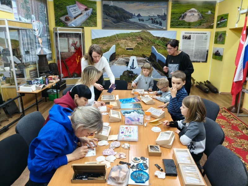Мастер-класс Оксаны уже успел завоевать популярность на областной выставке “Сахалинские традиции. Нам есть чем гордиться” в Южно-Сахалинске, где вызвал большой интерес благодаря своей авторской технике росписи, вдохновленной красотой местных пейзажей. Места на мастер-класс разлетелись задолго до начала — всего за день. Было заявлено 10 мест, но желающих оказалось больше. Такое ограничение связано с тем, что ракушки, используемые для росписи, - не просто случайные находки на берегу океана. Они проходят специальную обработку в несколько этапов, и, конечно, на всех желающих их могло не хватить. Однако организаторы были готовы к неожиданностям, так что благодаря предусмотрительно заготовленным запасам, материалов хватило всем. Участникам предлагалось изобразить знакомые всем местные пейзажи — вулкан Неожиданный и извержение вулкана Эбеко. На ракушках заранее были нанесены авторская надпись “Парамушир. С любовью к путешествиям!” и контуры. Казалось бы, задача простая, но именно здесь начинался самый захватывающий творческий процесс. Участники свободно выбирали цвета и детали оформления, выражая свое восприятие красоты родного края. Для некоторых начало работы оказалось непростым: кто-то сомневался в выборе палитры, а кто-то долго не мог решить, с чего начать. Погружаясь в процесс, каждый постепенно находил вдохновение и уверенность. Участники экспериментировали с оттенками, добавляли мелкие детали. Все работы получились совершенно разными, каждая стала своеобразным отражением индивидуальности автора. Мастер-класс прошел в теплой атмосфере. Завершился он чаепитием с домашней выпечкой, что добавило мероприятию уюта. Участники уходили не только с хорошим настроением, но еще и с уникальными сувенирами, символизирующими богатство природы Северных Курил.